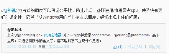 今天在微博上看到erlang调度器的工作细节的文章来源见这里。这篇文章很准确的描述了Erlang调度器是如何工作的,很好的澄清了大家对各种语言调度器的误解。 本来我前段时间想自己写,看来没必要了,就顺手贴出来给大家。